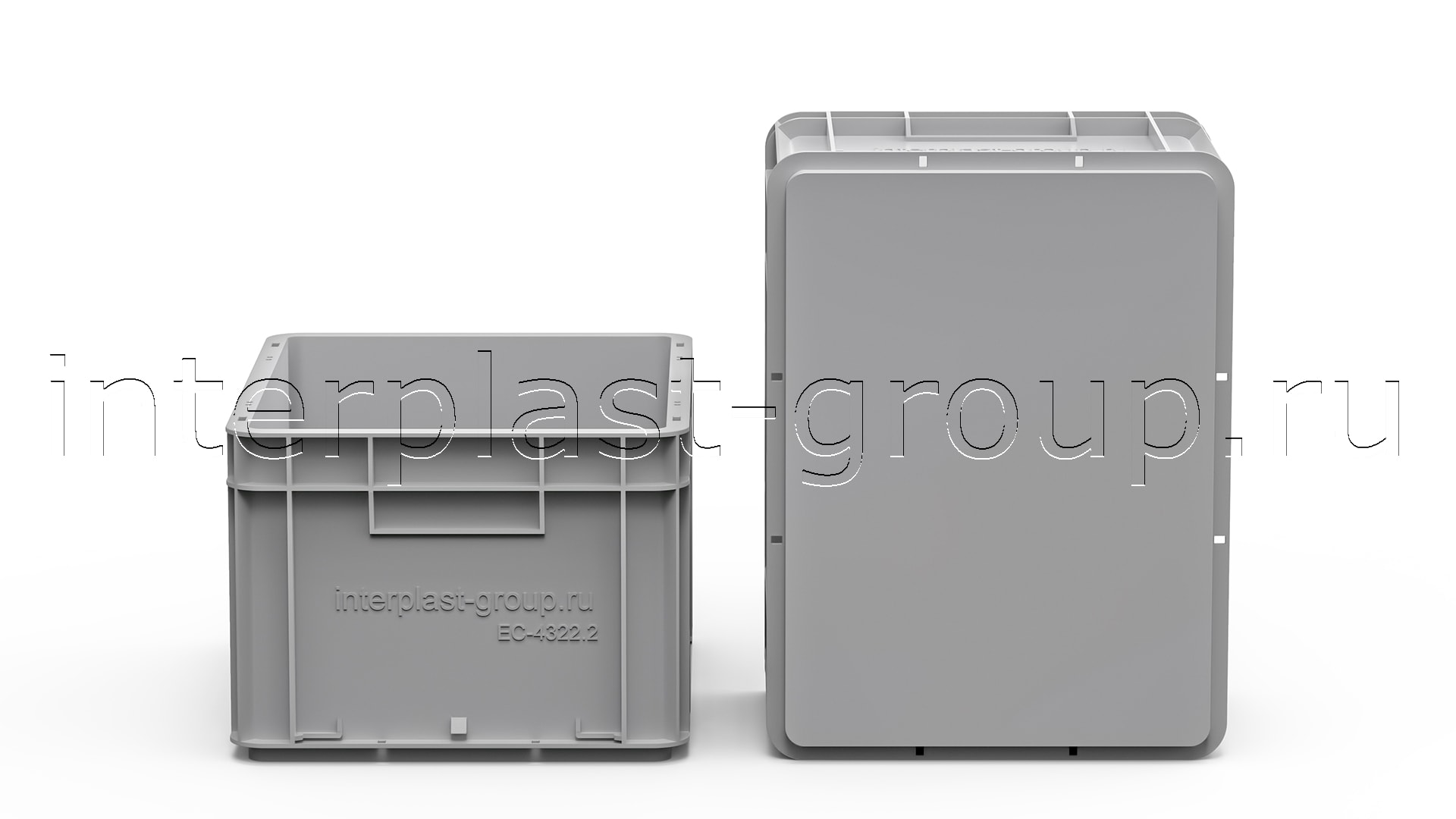 Евроконтейнер закрытые ручки/сплошное дно (серый), 400x300x220 мм