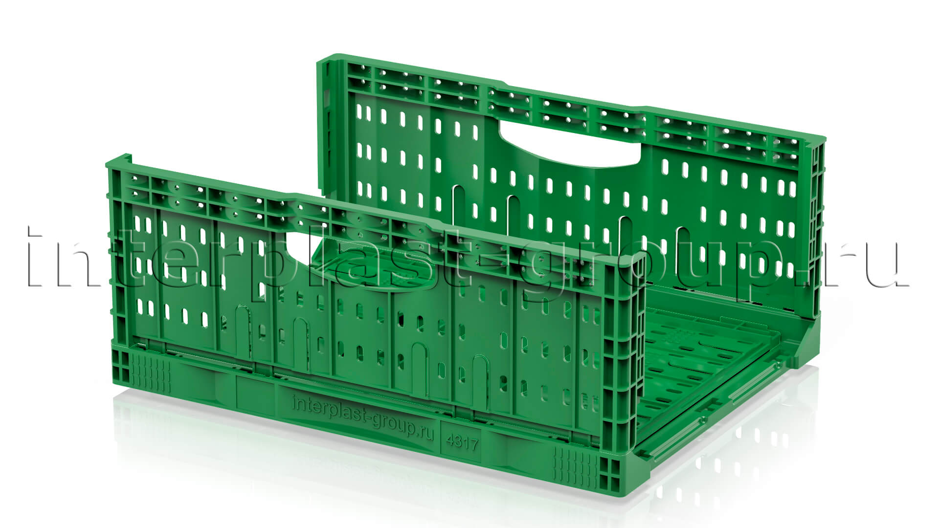 Складные ящики разработаны и спроектированы для хранения и перемещения плодо-овощных культур как внутри производства, так и между торговыми точками и складами. Благодаря функции складывания значительно экономят место при использовании в качестве возвратной тары. Перфорированные стенки обеспечивают сохранение свежести и сочность продуктов перфорации абсолютно на всех стадиях логистики. Штабелируются на паллетах 1200х1000 и 1200х800.